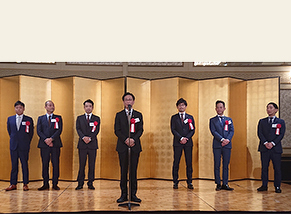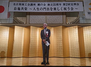 初めに山本会長より、門出を楽しく祝う会が開催される喜びのご挨拶をされ、次に来賓である若鯱会より代表幹事柘植一憲様を初めとする代表副幹事よりご祝辞をいただいたあと、司会の安田交流副委員長と佐橋交流委員の進行により式典は厳かに執り行われました。