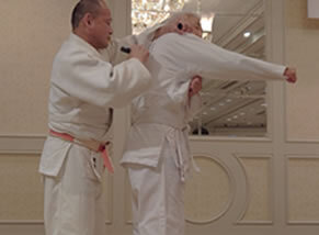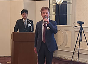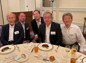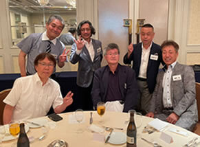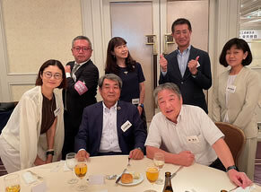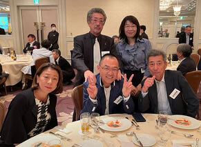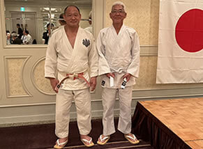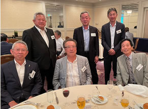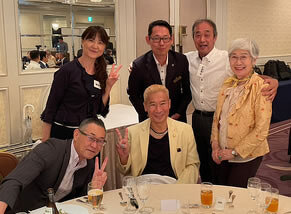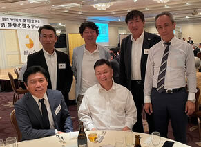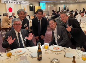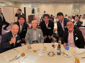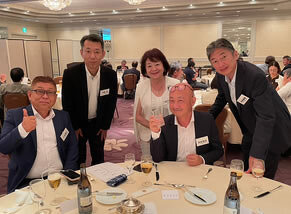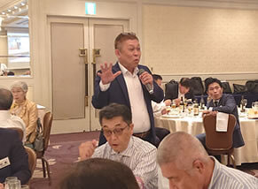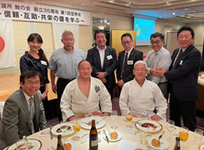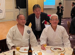 講演会終了後は中村副会長の乾杯の発声により懇親会がスタートしました。 懇親会には岡田様も参加していただき、アトラクションでは岡田様に山本会長が体落としと大外刈りで投げられるシーンもあり大いに盛り上がりました。また、質疑応答コーナーでは会員からの質問に丁寧に答えていただきました。