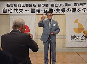 周りを尊重して敬う心を持って、自分の持てる力を正しい方向に使えばそれが周りの為になり、社会の為になり自分と周りと共に栄えていける。と重なる部分が多くあり35周年の第1回定例会に相応しい講和になりました。