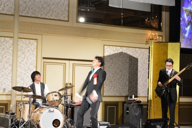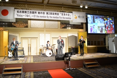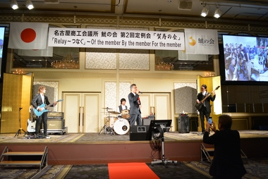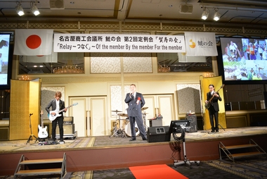 還暦会員はそれぞれに選んだ歌を生バンド演奏の元で歌い登場し、会場は大いに盛り上がりました。
