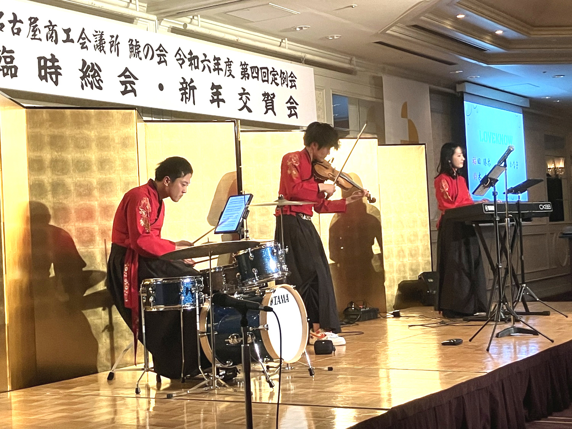 祝宴はゲストのLOVEKNOW様の演奏で馴染みのある曲を披露していただき開場が大いに盛り上がりました。